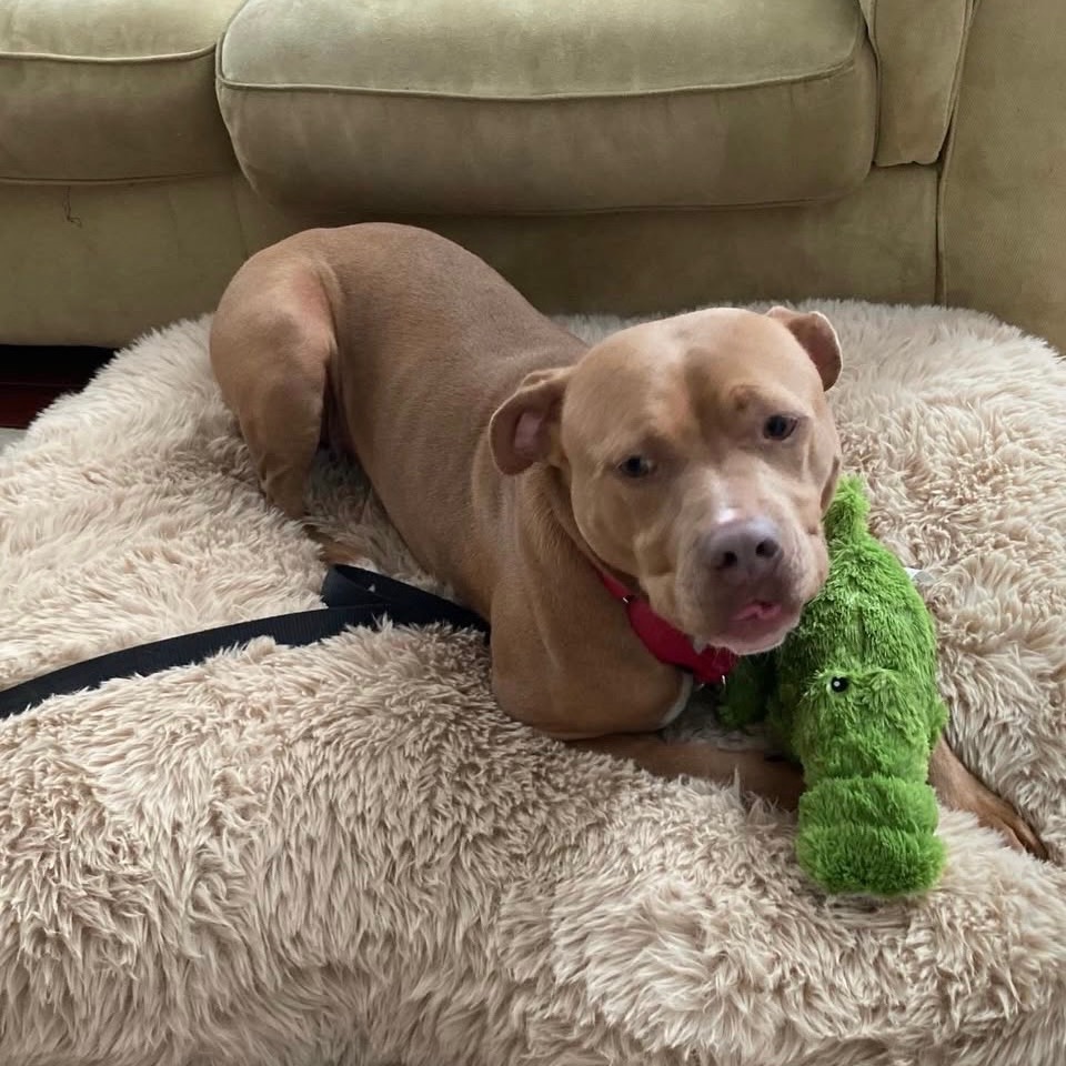 Petra is a sweet pup that would LOVE an adopter looking for a dog that cuddles!!! She may weigh 55 pounds, but she is pretty sure she is the perfect size for any lap! She is a really great house-trained dog that would love doggo friends, but would benefit from being a solo dog in her own home. She likes the quiet and calm! She LOVES playing with stuffed squeaky toys, and just being a part of the family.